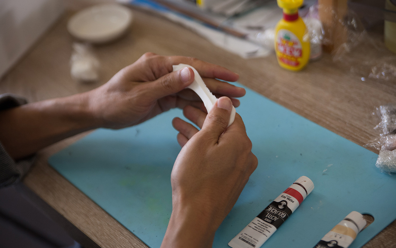 樹脂粘土、石膏粘土、木材、紙、油粘土など、作品のテーマに合わせて多様な素材を組み合わせ、一つのスタイルにとらわれない自由な造形表現を大切にしています。