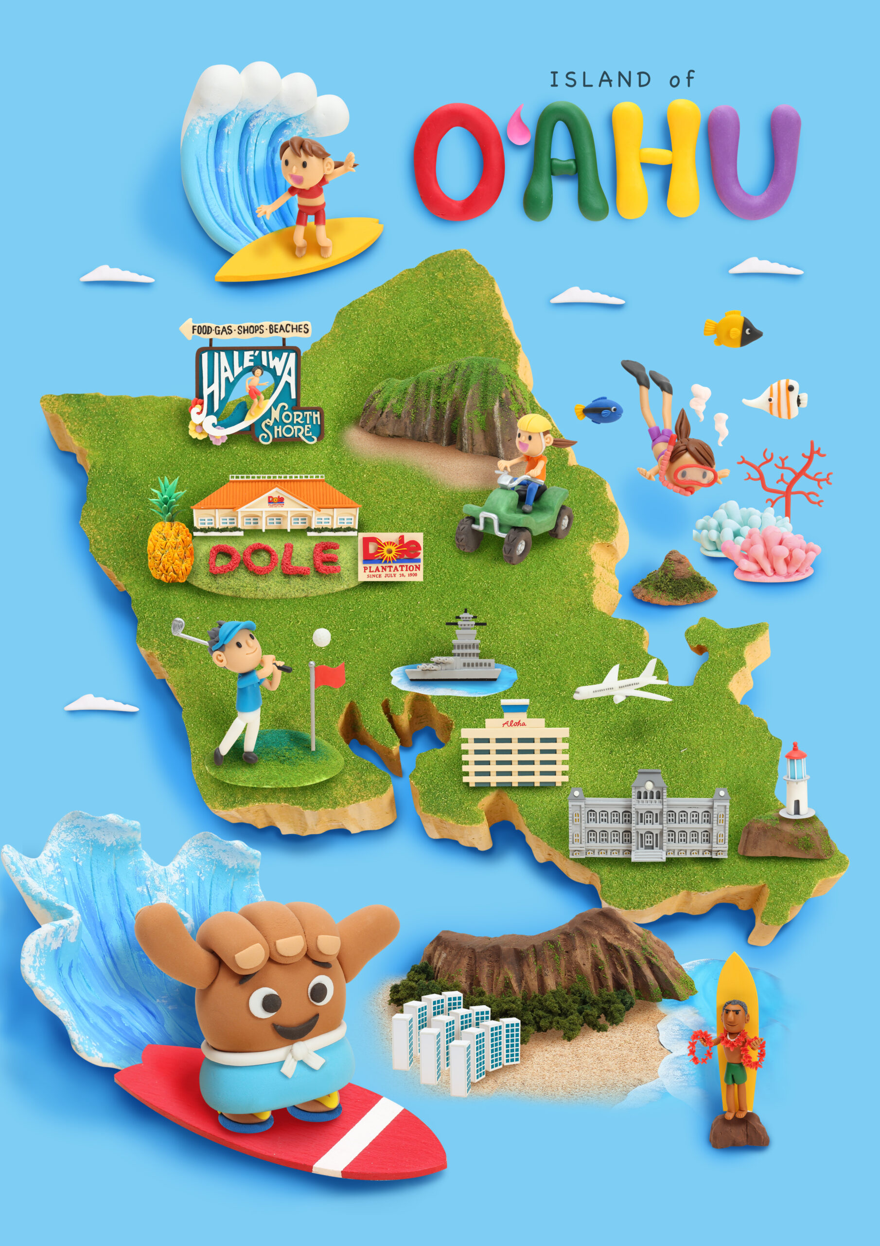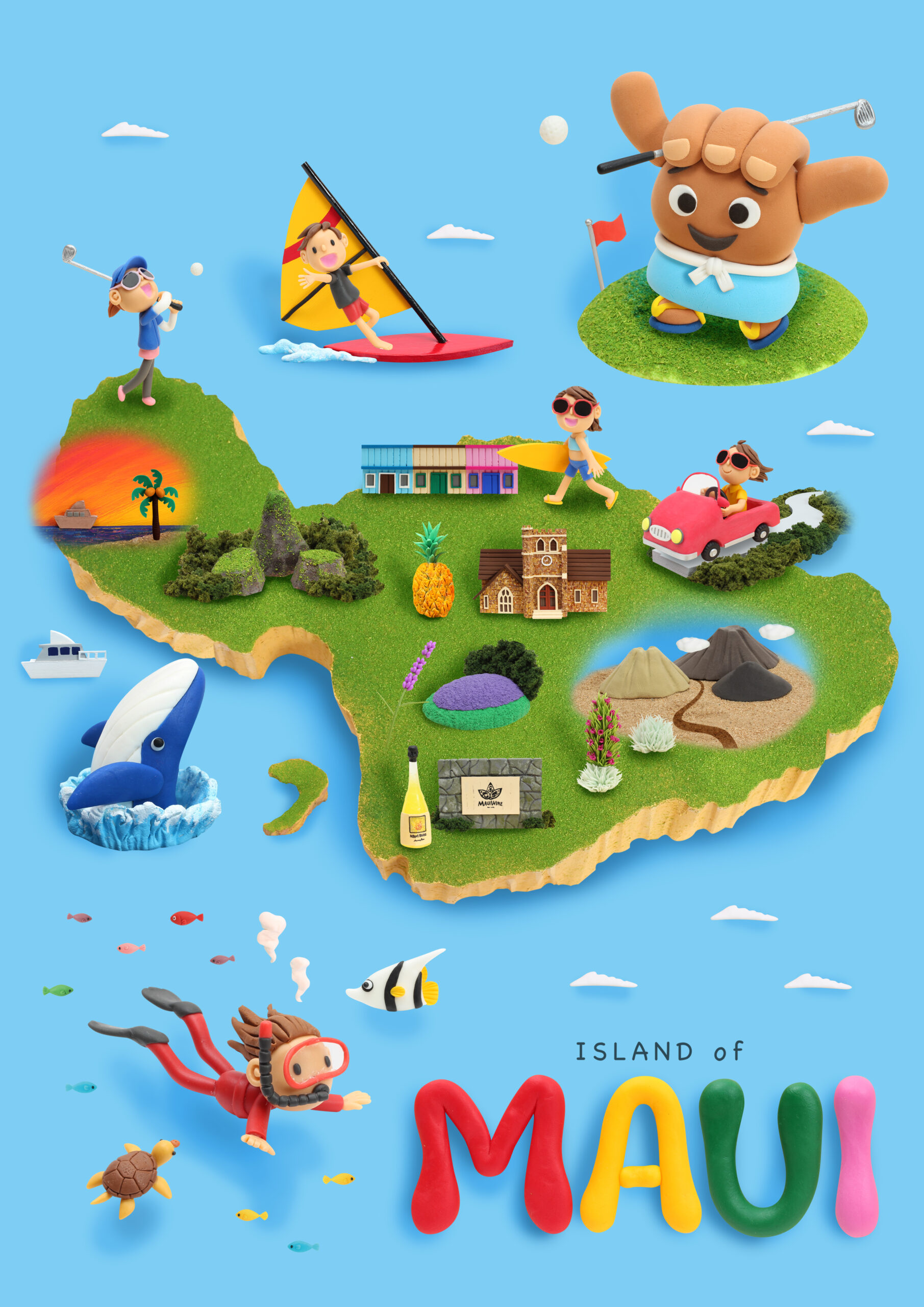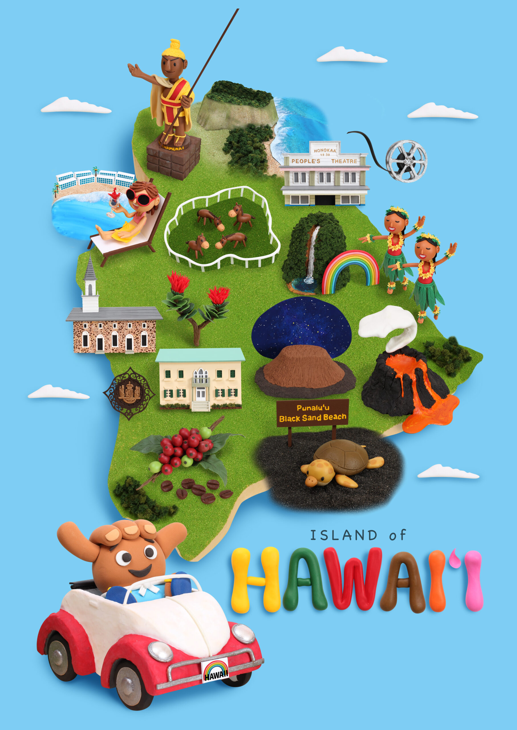 【クレイアート/ミニチュアジオラマ】ハワイ州観光協会 “ハワイ4島” クレイアートビジュアル制作|ウォルナッツ・クレイワークスタジオ