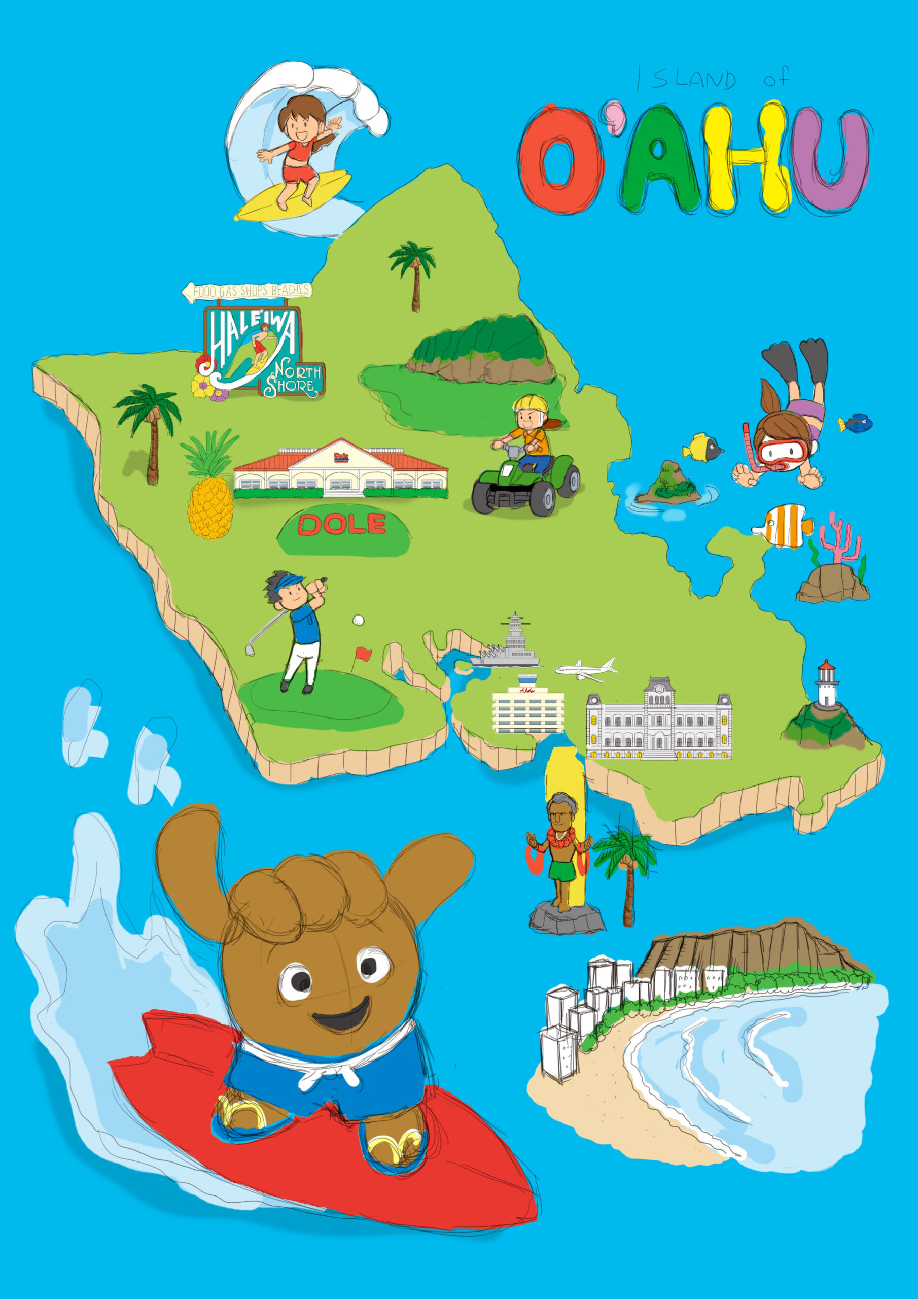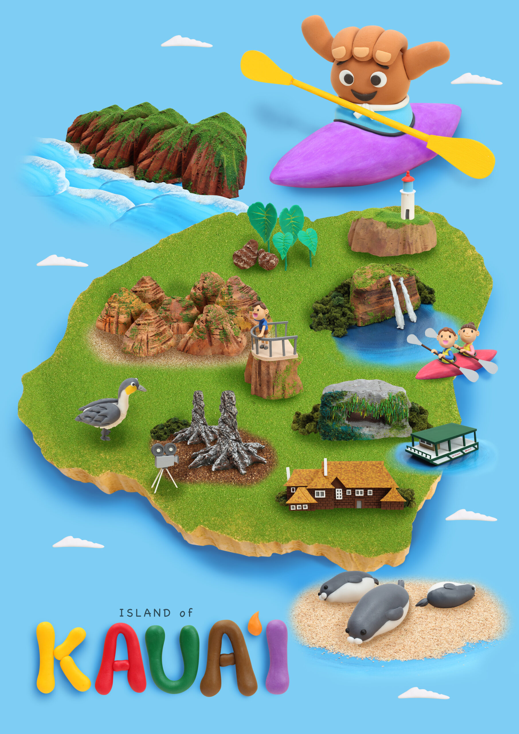 ハワイ州観光協会さまのプロモーション企画として、ハワイ4島(ハワイ島・オアフ島・マウイ島・カウアイ島)をテーマにしたビジュアルアートをクレイアートで制作。ハワイ州観光協会公式キャラクター「Shakaちゃん」がガイドとなり、4つの島を巡りながら観光地・文化・アクティビティを紹介する構成です。ビジュアルデザイン(イメージラフ・レイアウト)から立体造形、照明、撮影、編集までをウォルナッツ・クレイワークスタジオが一貫して担当しました。