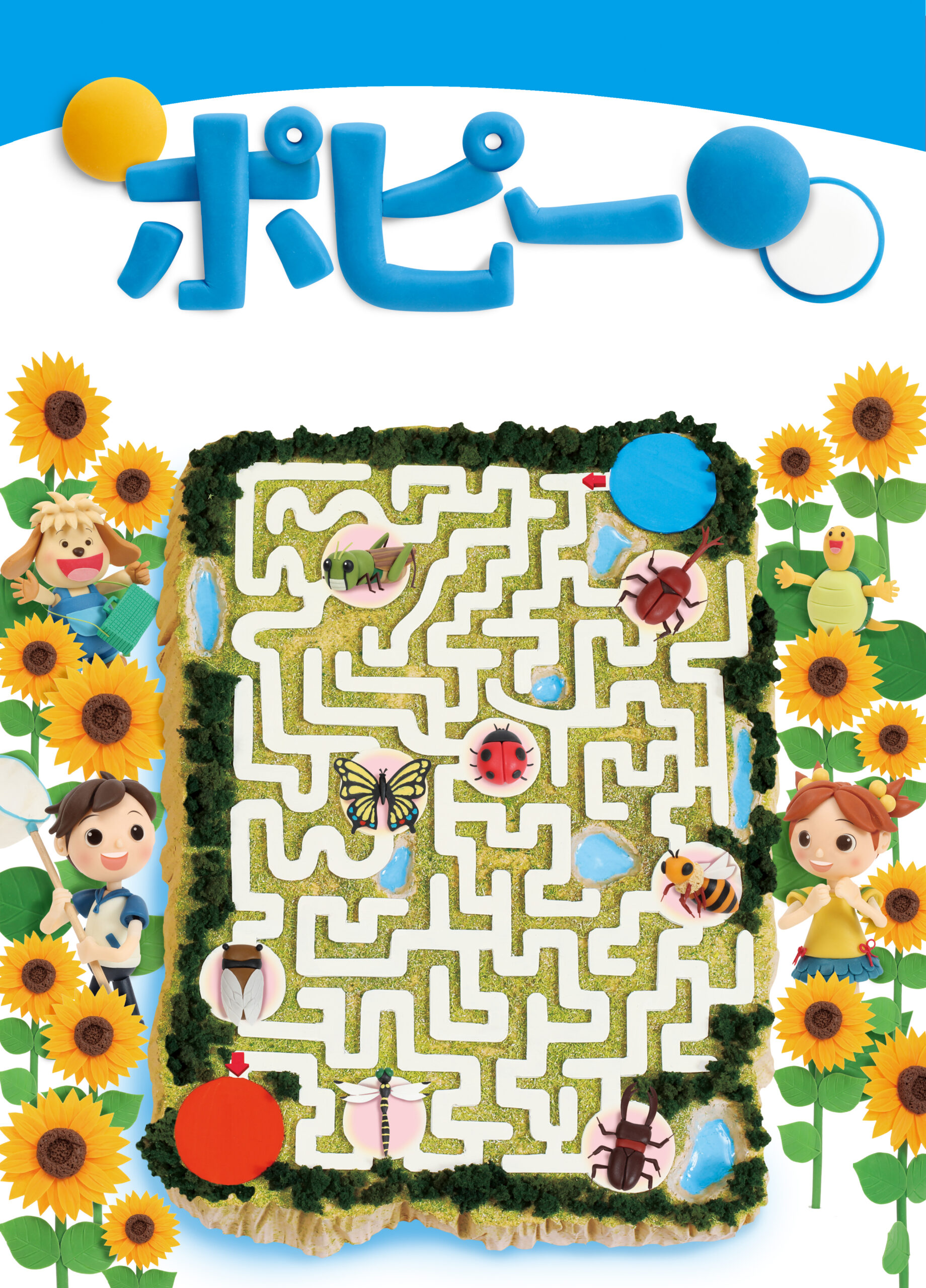 小学ポピー『1・2年生』2017年7月号の表紙ビジュアルを、クレイアート(粘土立体イラスト)で制作しました。今号のテーマは「迷路 × 昆虫採集」。スタートからゴールまでの道のりをたどりながら、夏の昆虫を探して進む“遊び心満載の迷路ビジュアル”です。ウォルナッツ・クレイワークスタジオが、企画、ビジュアルデザイン・立体造形・照明・撮影・編集・DTPデザインまでを一貫して担当。教材表紙としての視認性と世界観を両立させた、教育ビジュアル用のクレイアート作品です。