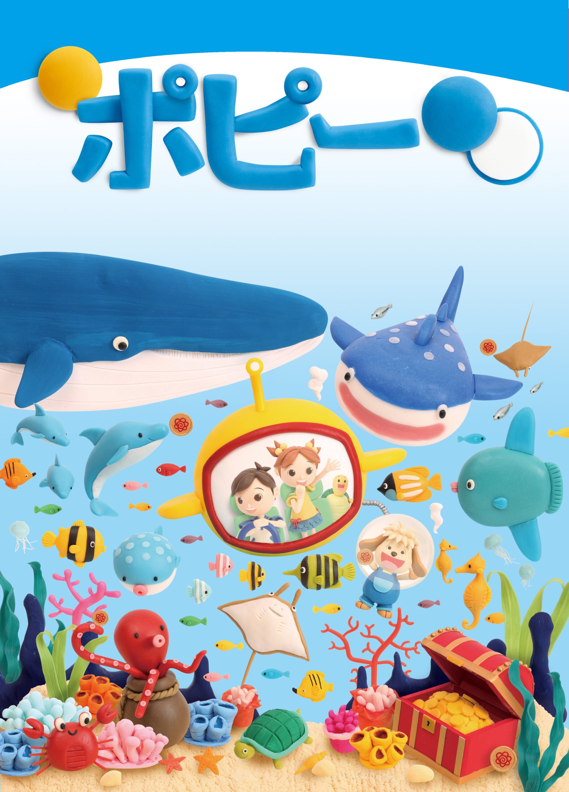 小学ポピー『1・2年生』2017年8月号の表紙ビジュアルを、クレイアート(粘土立体イラスト)で制作しました。テーマは「海の中へ潜水艇に乗って大冒険!はなまるコインを探そう!」。夏休みのワクワクを感じる“探し絵アート”として、遊びと学びを融合させたクレイアート作品です。ウォルナッツ・クレイワークスタジオが、企画、ビジュアルデザイン、立体造形、照明・撮影、編集、DTPデザインまでを一貫して担当。教材表紙としての視認性と世界観を両立させた、教育ビジュアル用のクレイアートデザインです。