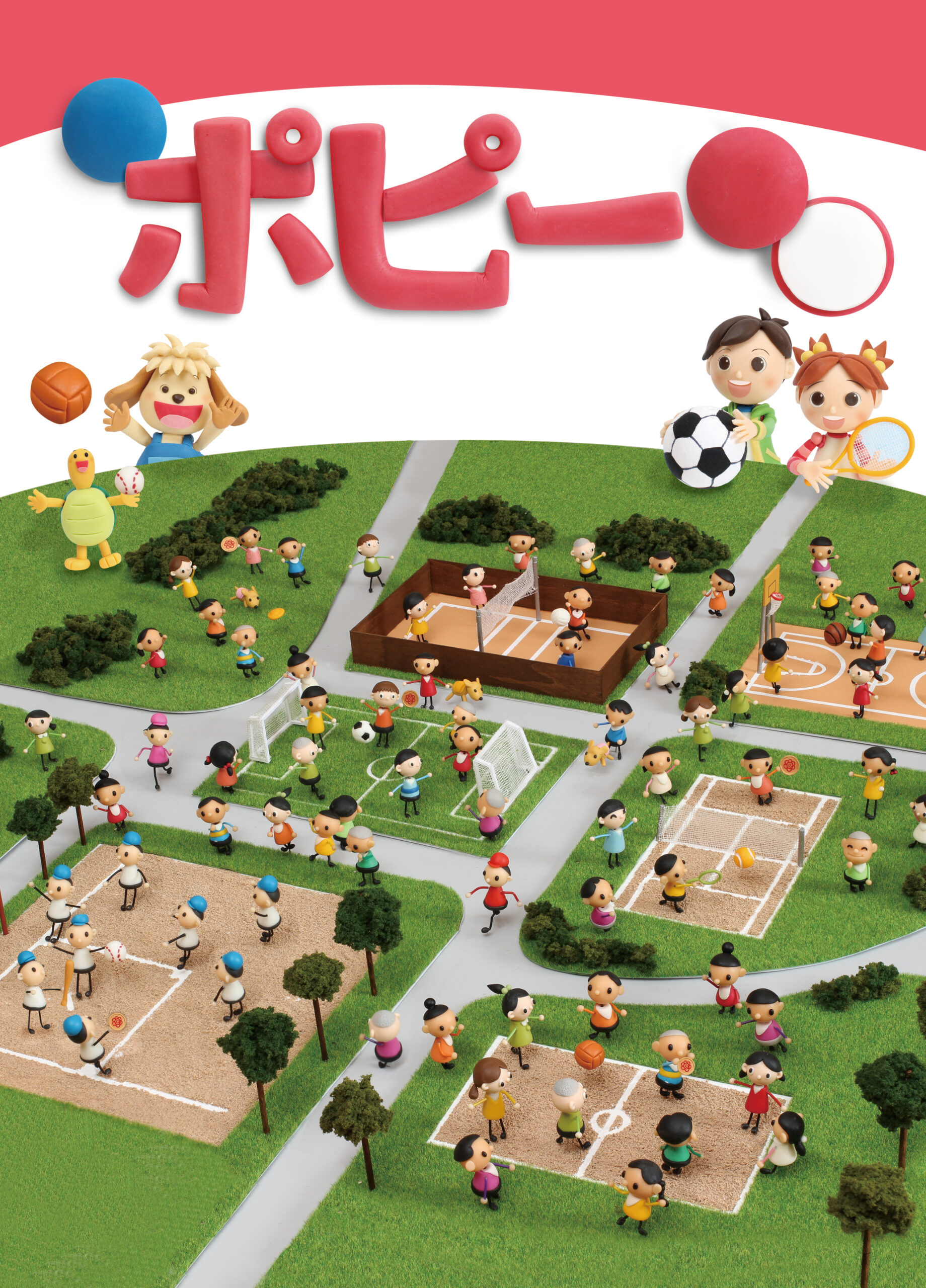 小学ポピー『1・2年生』2017年10月号の表紙ビジュアルを、クレイアート(粘土立体イラスト)で制作しました。テーマは「スポーツの秋!みんなで運動しよう!」。秋らしい高い空と元気いっぱいの運動場を舞台に、子どもから大人まで楽しそうにスポーツをする様子を、ミニチュアジオラマ形式の探し絵アートで表現しています。ウォルナッツ・クレイワークスタジオが、企画、ビジュアルデザイン、立体造形、照明・撮影、編集、DTPデザインまでを一貫して担当。季節感・遊び・教育要素を兼ね備えた、教材表紙用クレイアート作品です。