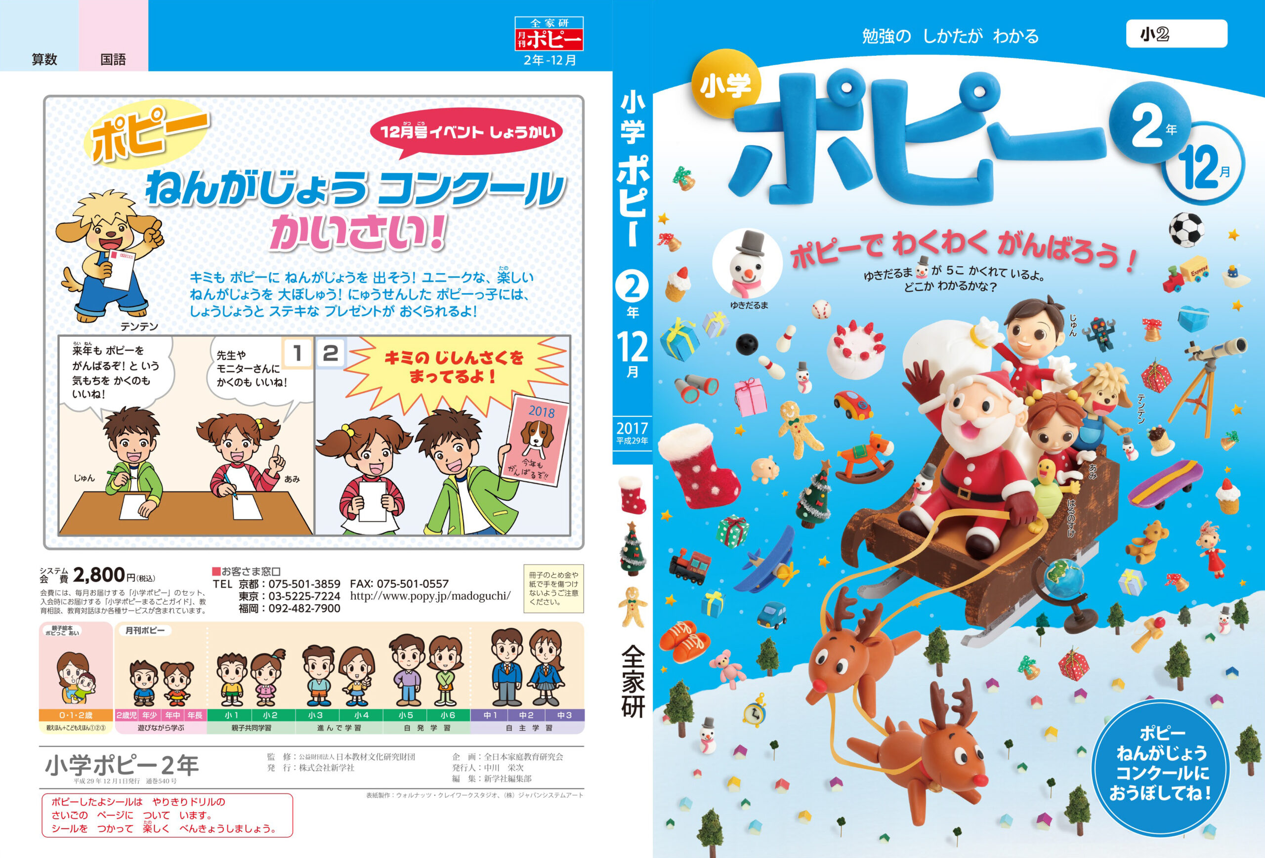 【クレイアート/粘土立体イラスト】小学ポピー「1・2年生」2017年12月号 教材表紙デザイン制作