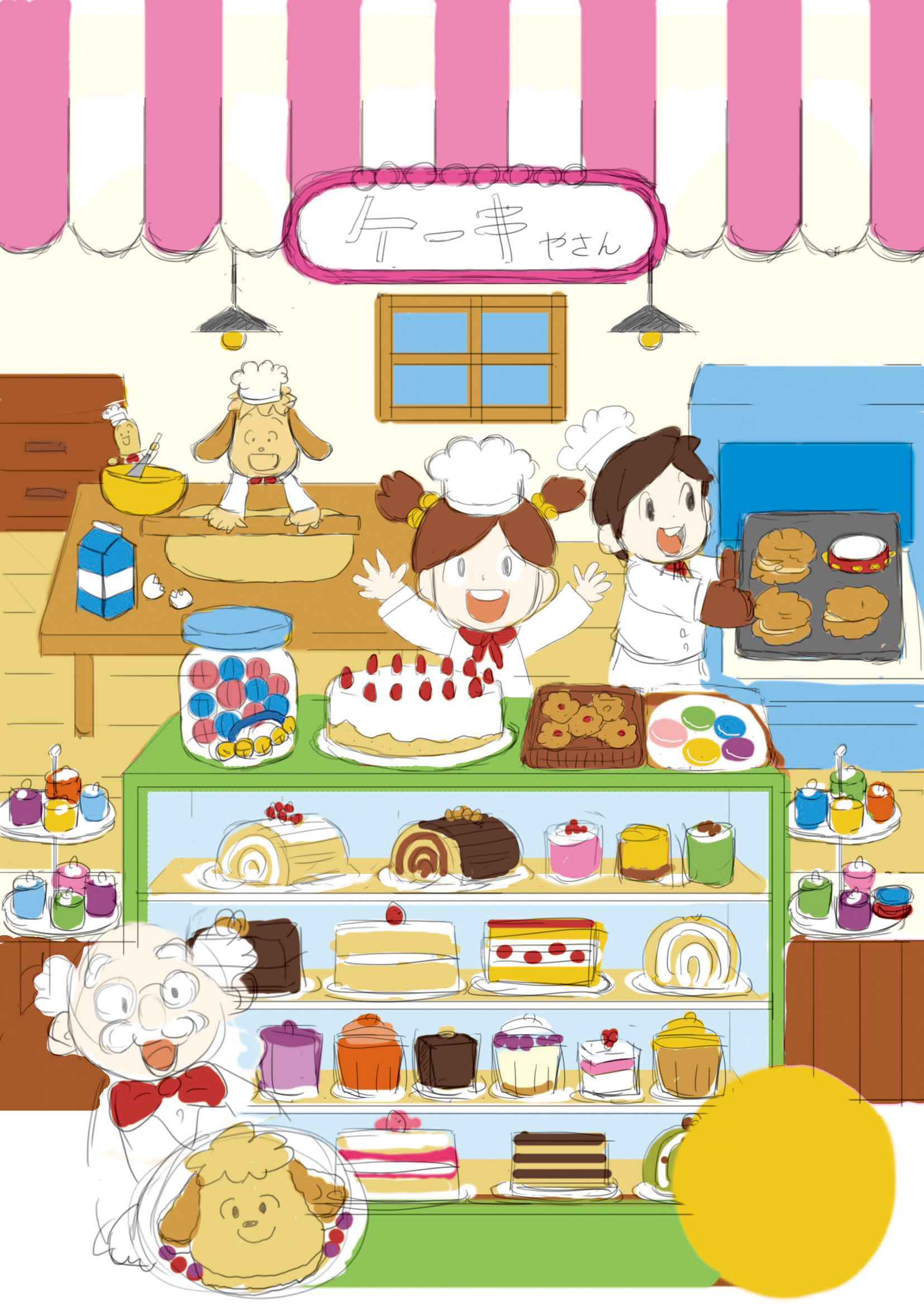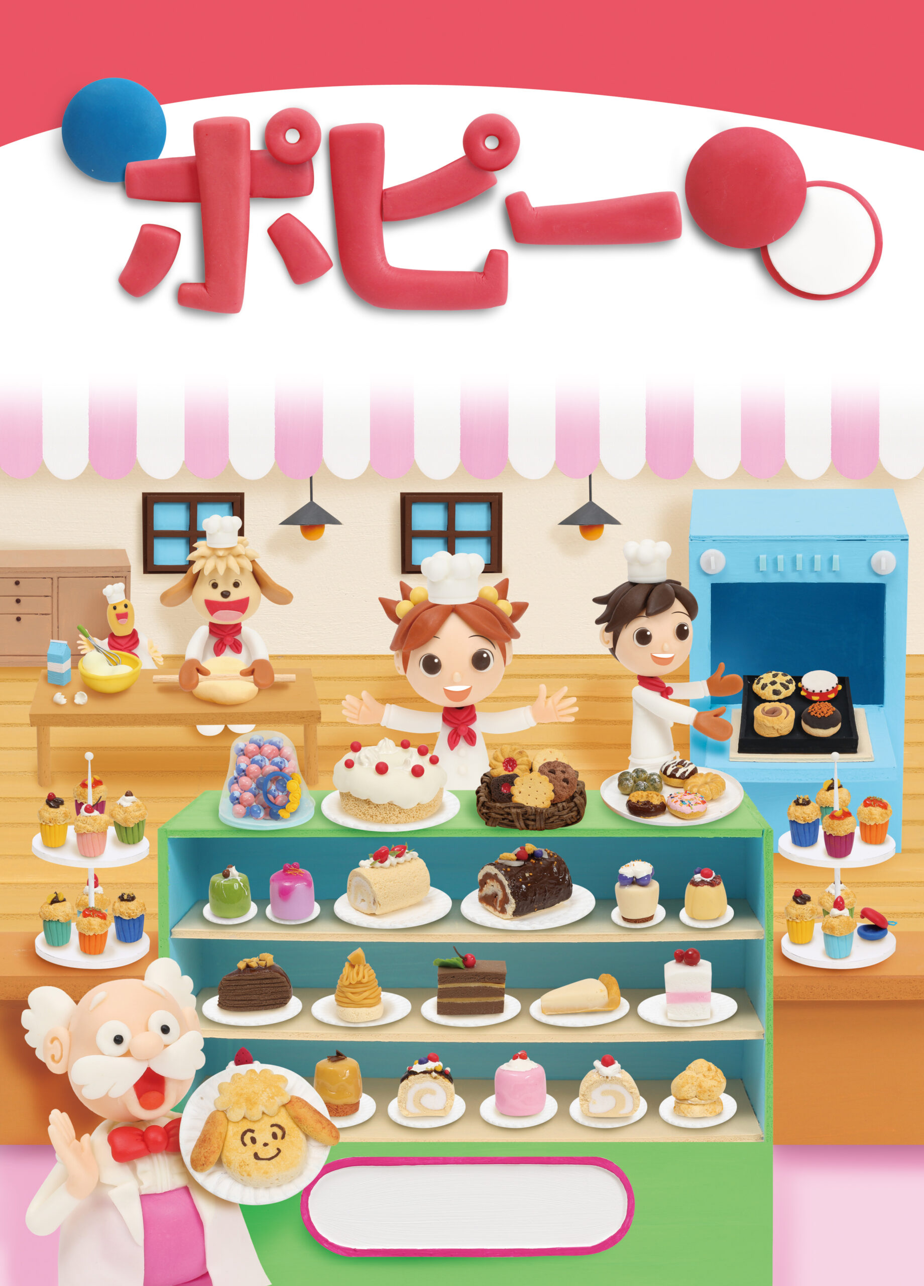 小学ポピー『1・2年生』2018年7月号の表紙ビジュアルを、クレイアート(粘土立体イラスト)で制作しました。2018年度シリーズ“やってみたいお仕事”の第4弾は、「ケーキ屋さん(パティシエ)」。じゅんとあみ、テンテン、はるのすけたちがパティシエの格好をして、ケーキを作ったりお店で販売したりしている、楽しいお仕事体験のシーンを描いています。ウォルナッツ・クレイワークスタジオが企画構成・ビジュアルデザイン・立体造形・撮影・照明・DTPデザインまでを一貫して担当。“つくるよろこび”と“おいしそうな世界観”を融合させた、見て楽しい・学んでうれしい粘土スイーツの教育ビジュアルです。