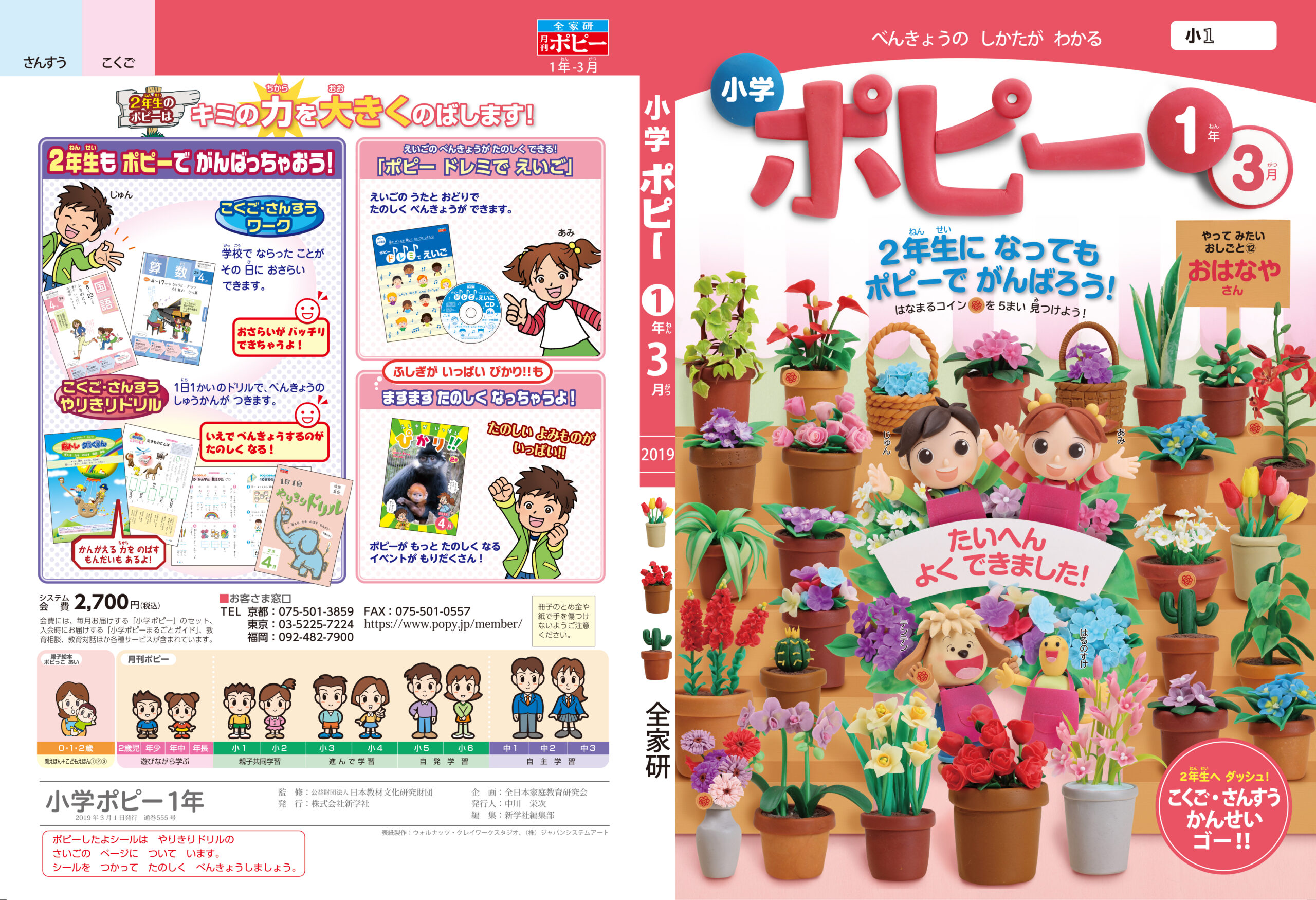 小学ポピー「1・2年生」2019年3月号 教材表紙デザイン制作