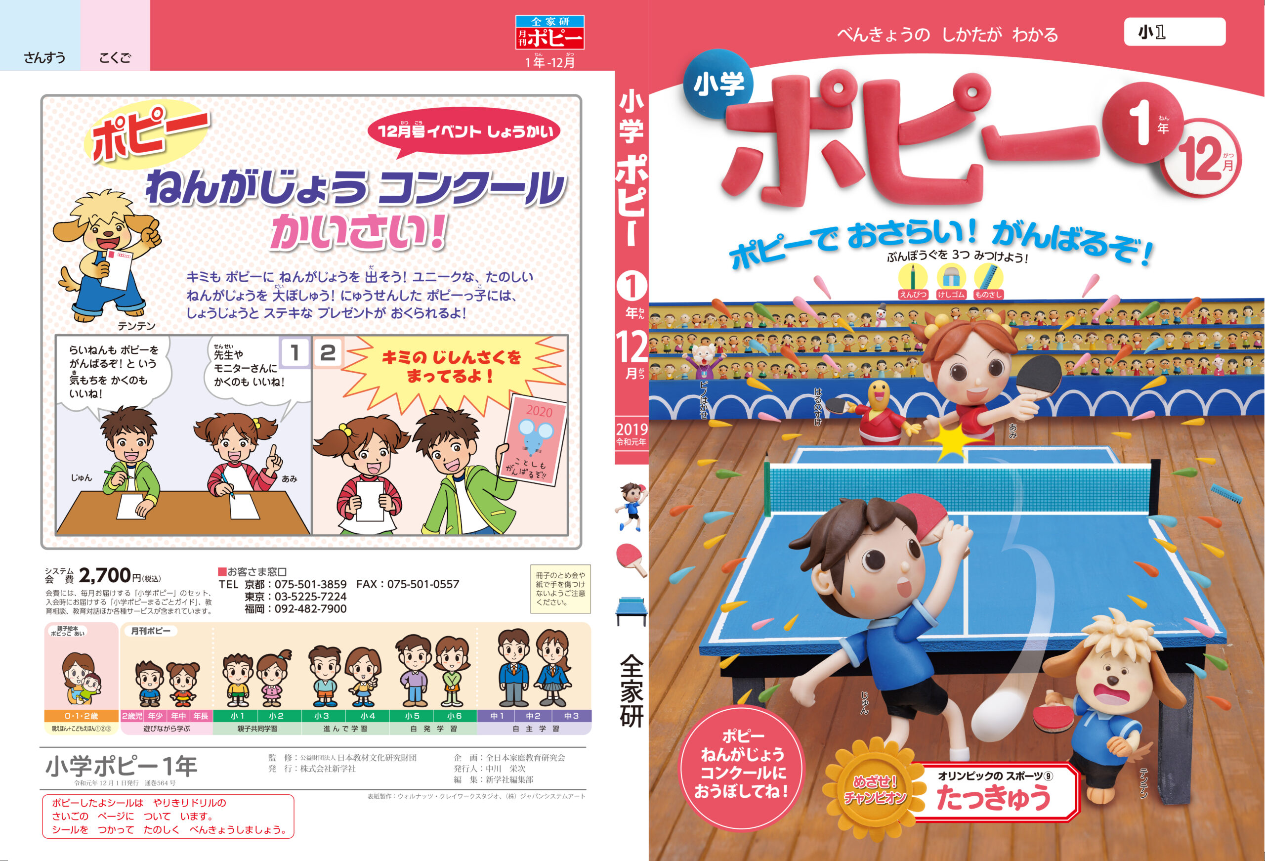 小学ポピー『1・2年生』2019年12月号の表紙ビジュアルを、クレイアート(粘土立体イラスト)で制作しました。2019年度シリーズ「2020東京オリンピックに向けて、スポーツを知ろう!」の今月号は“卓球”をテーマに構成。ウォルナッツ・クレイワークスタジオが、立体造形・照明・撮影・編集・DTPデザインまでを一貫して担当し、クレイアートならではの精密な造形表現とアクティブな構図で、卓球競技のスピード感と緊張感を誌面の中に再現しました。