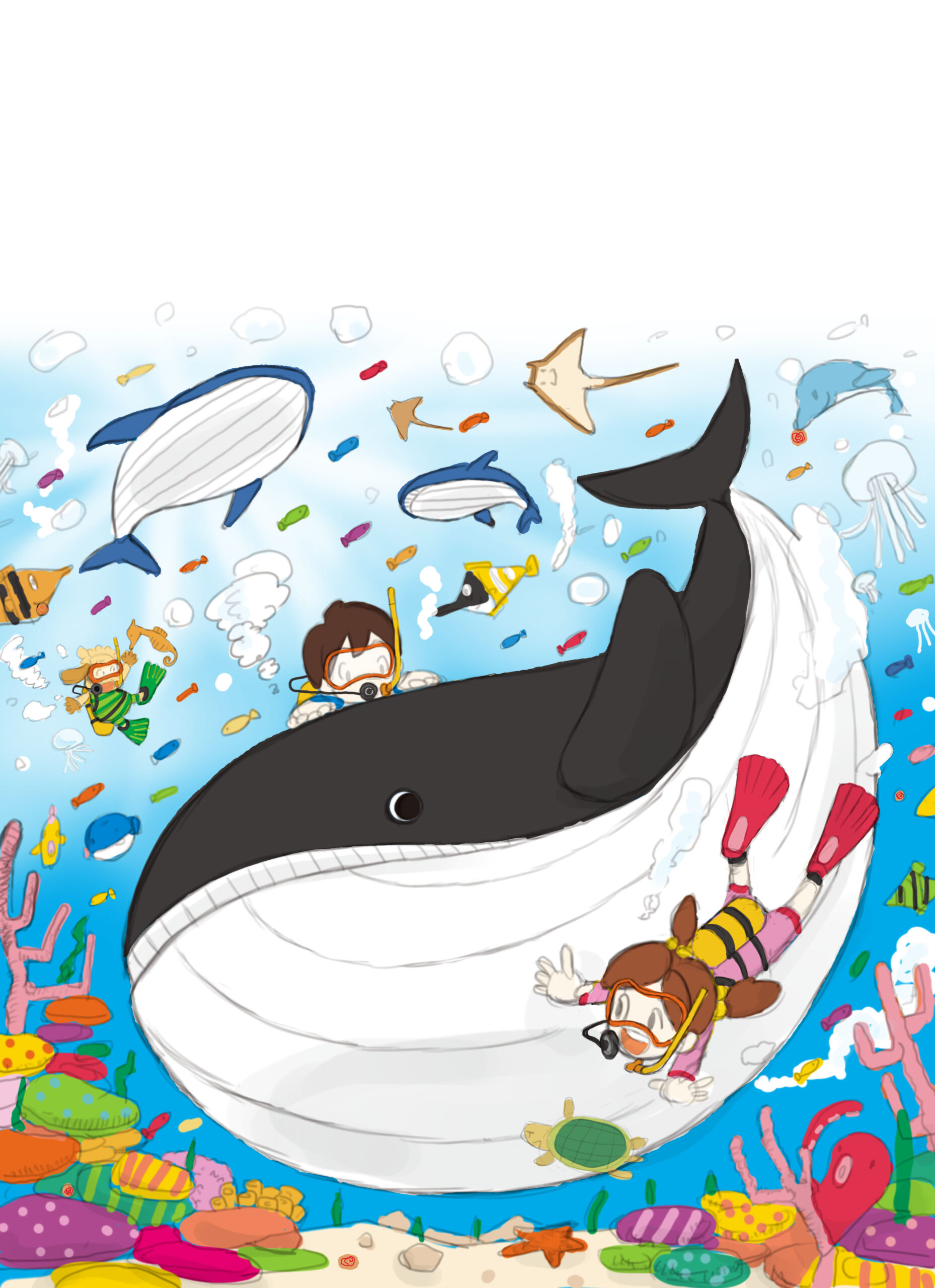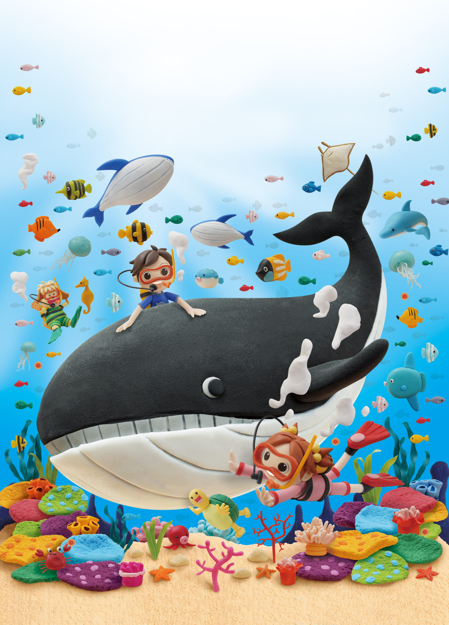 小学ポピー『1・2年生』2020年7月号の表紙ビジュアルは、「夏もポピーでわくわく!どきどき!」をテーマに、夏の海を舞台にした爽やかで生命力あふれるミニチュアジオラマ作品です。じゅん、あみ、テンテン、はるのすけたちが海の中を泳ぎ、くじらやイルカ、熱帯魚たちと一緒に夏を満喫する様子を、 ウォルナッツ・クレイワークスタジオの空間構成力・色彩設計・物語性の融合表現によって立体的に描き出しています。