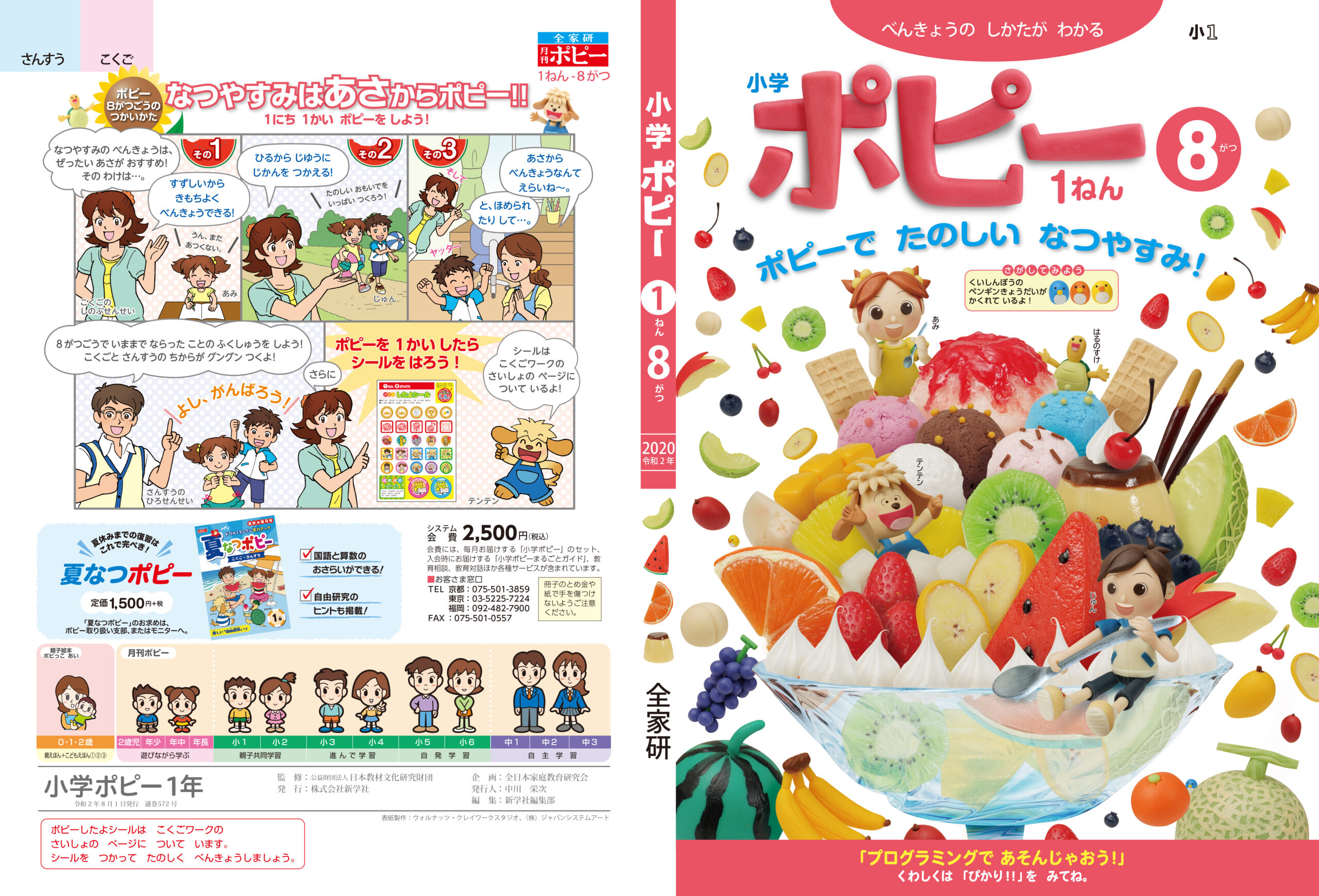 小学ポピー「1・2年生」2020年8月号 教材表紙デザイン制作