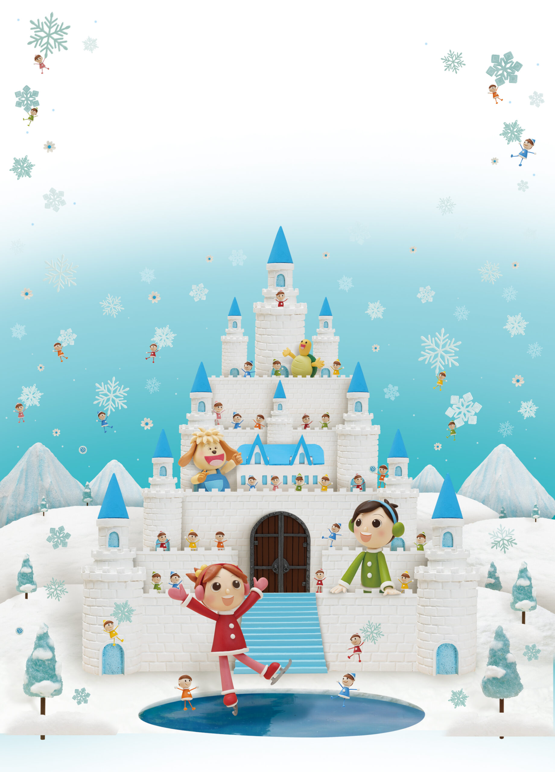 『小学ポピー「1・2年生」2020年12月号』の表紙は、“氷のお城”をテーマにした冬の訪れを感じるファンタジックなクレイアート作品。 防寒具に身を包んだじゅんとあみたちが雪の中を進み、中央には石膏粘土で制作した透明感あふれる氷の城がそびえ立ちます。氷のミニチュアジオラマの中では、テンテンとはるのすけが雪の妖精とともに遊びながら、冬の季節を喜ぶ姿が描かれています。誌面全体を包む淡いブルーの世界が、冷たさと美しさを兼ね備えた冬の情景を表現しています。