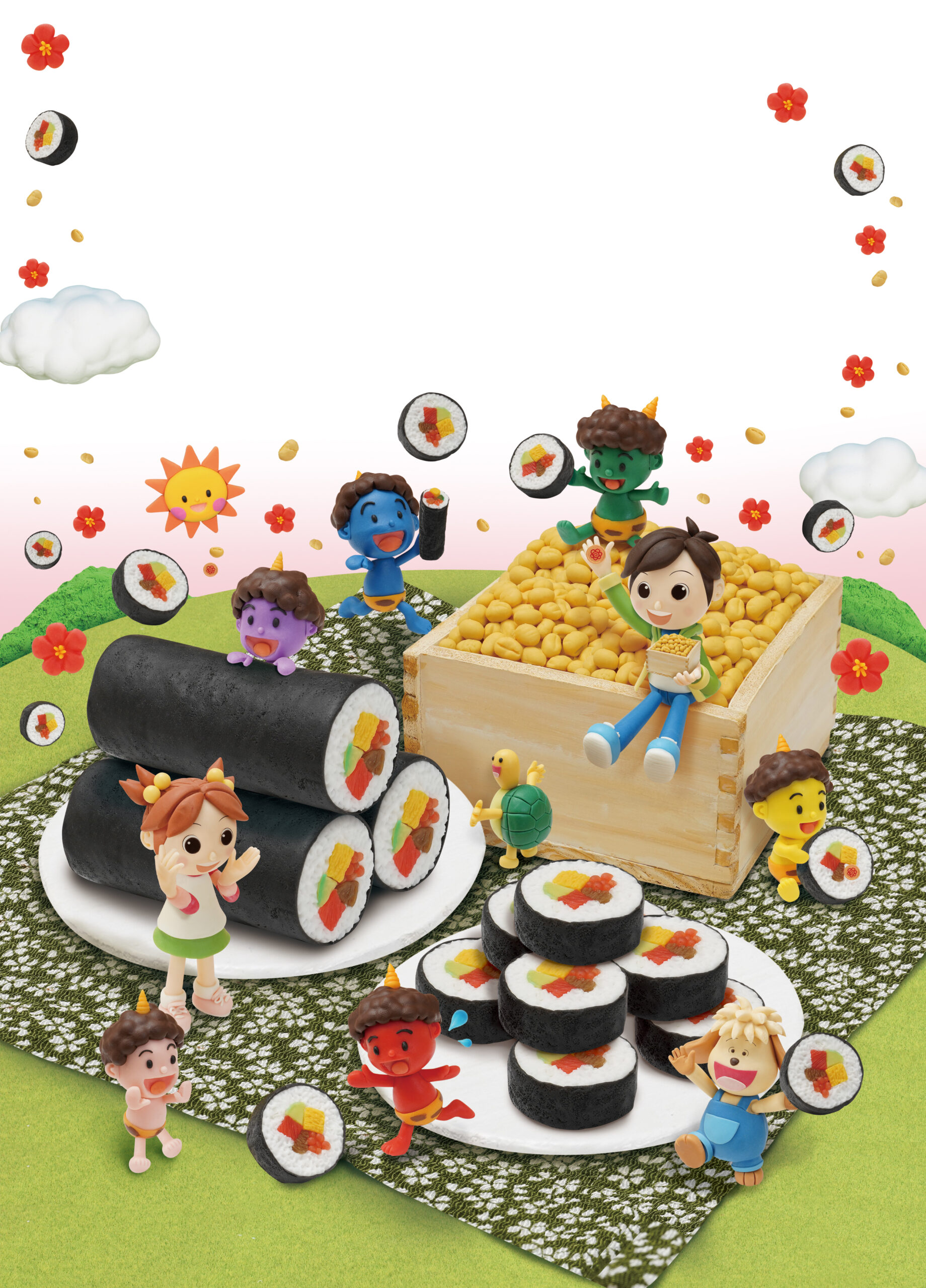 ・テーマ:節分 × 恵方巻き × 豆まき × 鬼の子どもたち