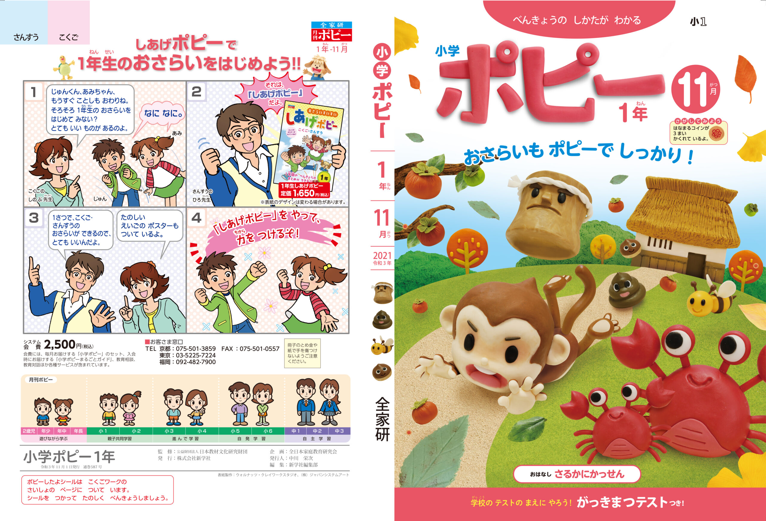 小学ポピー「1・2年生」2021年11月号 教材表紙デザイン制作