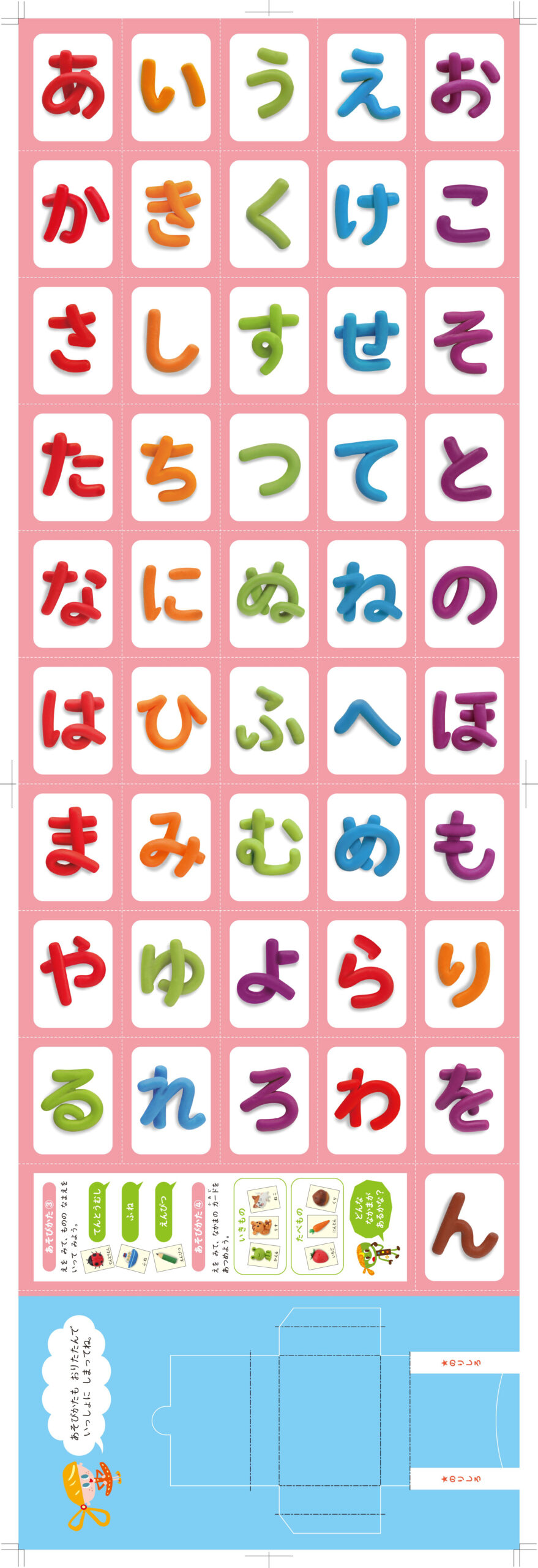 撮影では、白背景をベースにカラフルな粘土造形が引き立つよう配置。カードレイアウトはひらがな・イラスト・ことばの関係性が直感的に理解できる構成とし、保護者と子どもが一緒に遊びながら学べるよう工夫しました。印刷用の色校では、発色の鮮やかさと質感の柔らかさを両立するDTP処理を行い、教育教材としての機能性とデザイン性を兼ね備えています。